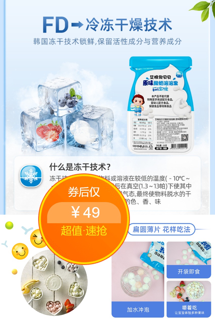 爷爷的农场婴幼儿DHA牛奶溶豆6个月以上宝宝零食婴儿酸奶溶溶豆